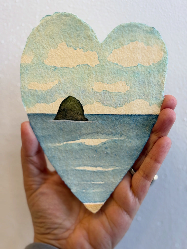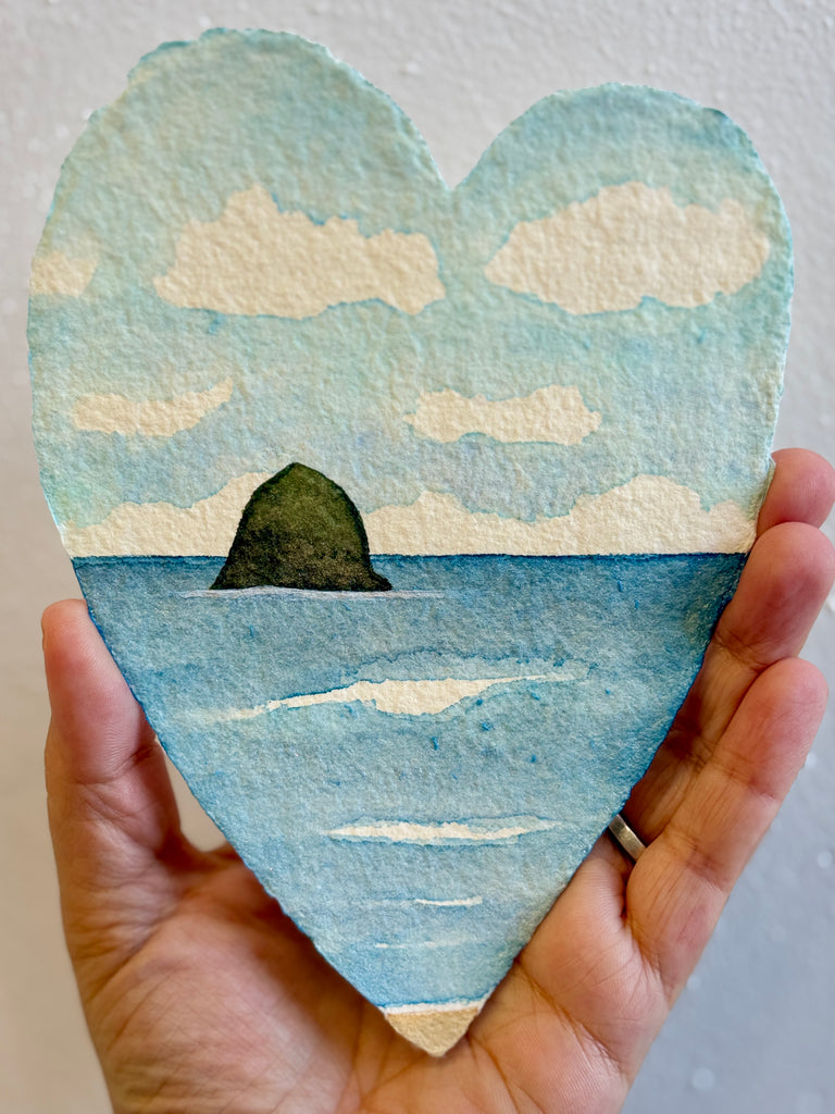 Emerald Seas of Haystack 11 x 14 - Original Watercolor Paintings By Seasons Kaz Sparks