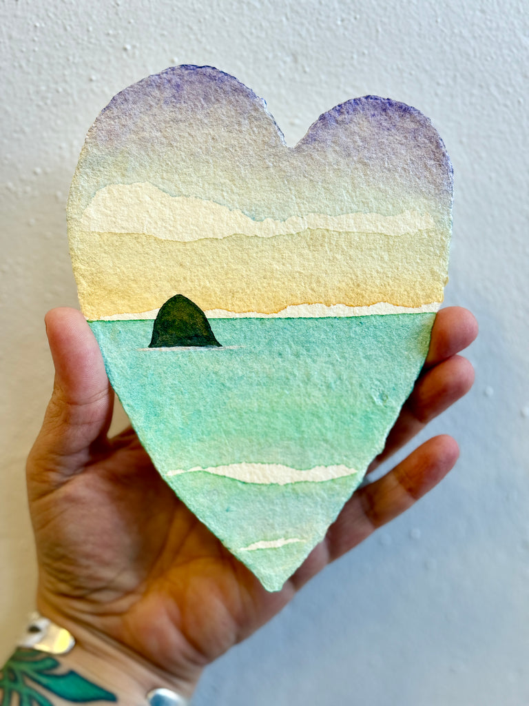 Original Watercolor paintings are painted using Beam Paints including mica based shimmer colors for sparkle & texture. Paintings are linen tape loose mounted on archival white mat backings & matted with archival white mats. Size includes matting.
